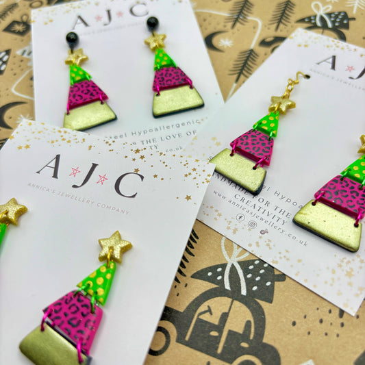 Contemporary Gold Green Pink Leopard Print Christmas Trees