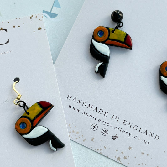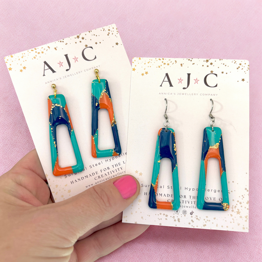 Turquoise Orange Navy and Gold Marbled Hollow Dangle