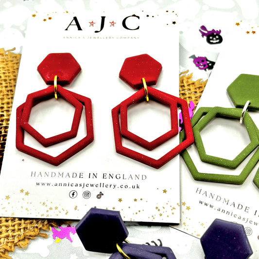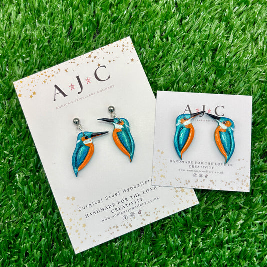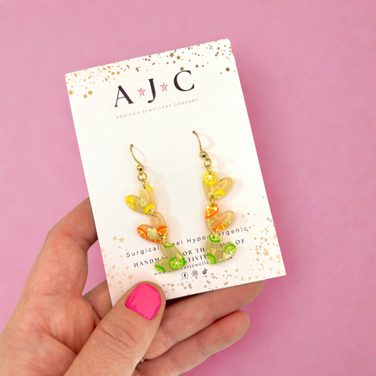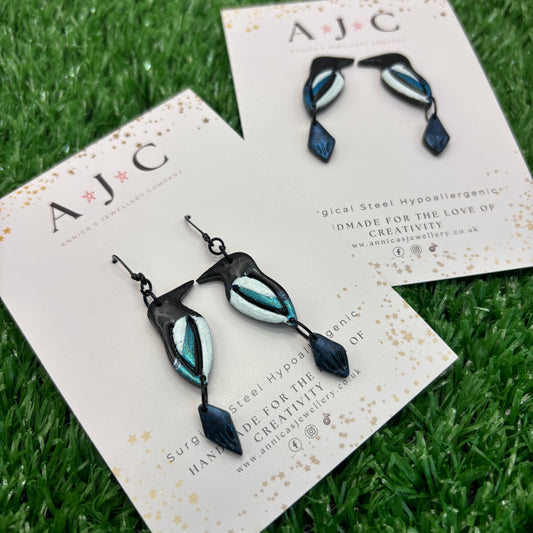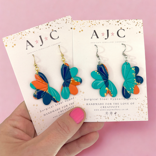 Turquoise Orange Navy and Gold Marbled Half Flower Dangle