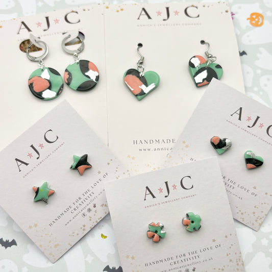 Small Jade, Black, Pink and Silver Circles